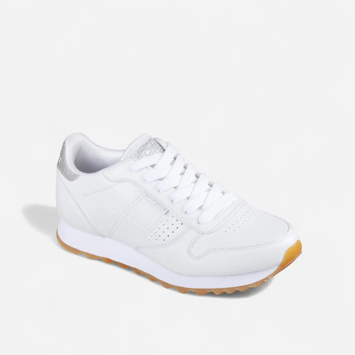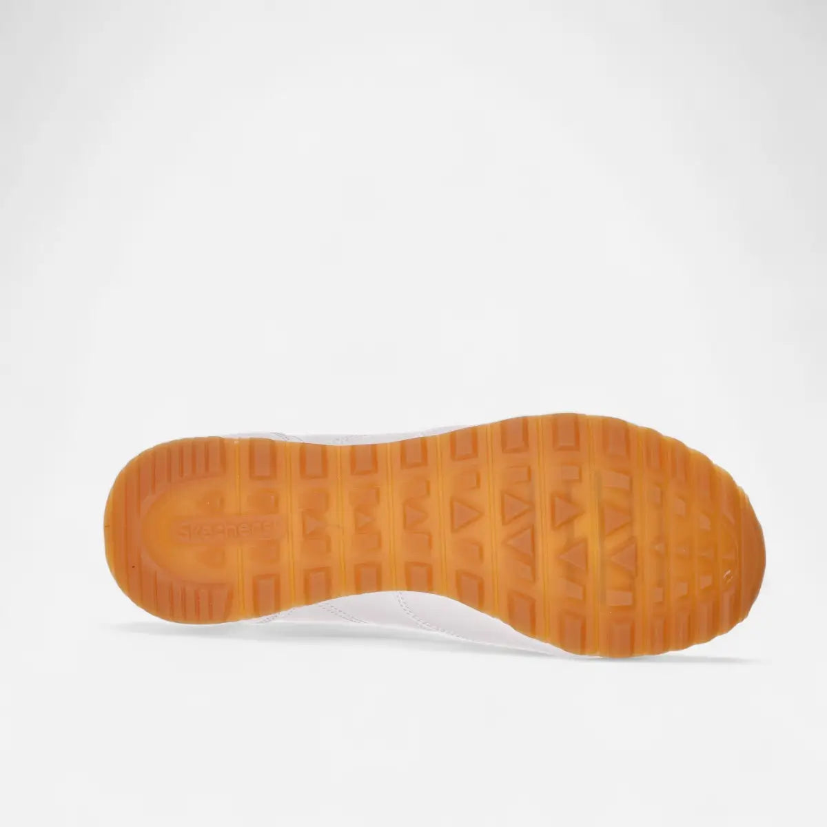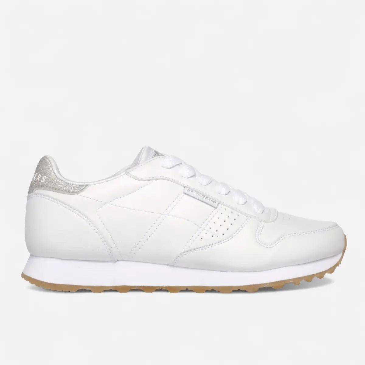 Tornano in grande stile le sneaker OG 85 firmate Skechers, in una versione total white arricchita da dettagli glitterati che mixano nostalgia e contemporaneità. La silhouette heritage da jogging incontra il comfort della soletta Air-Cooled Memory Foam®, per un look old-school che non rinuncia a tecnologia e leggerezza.