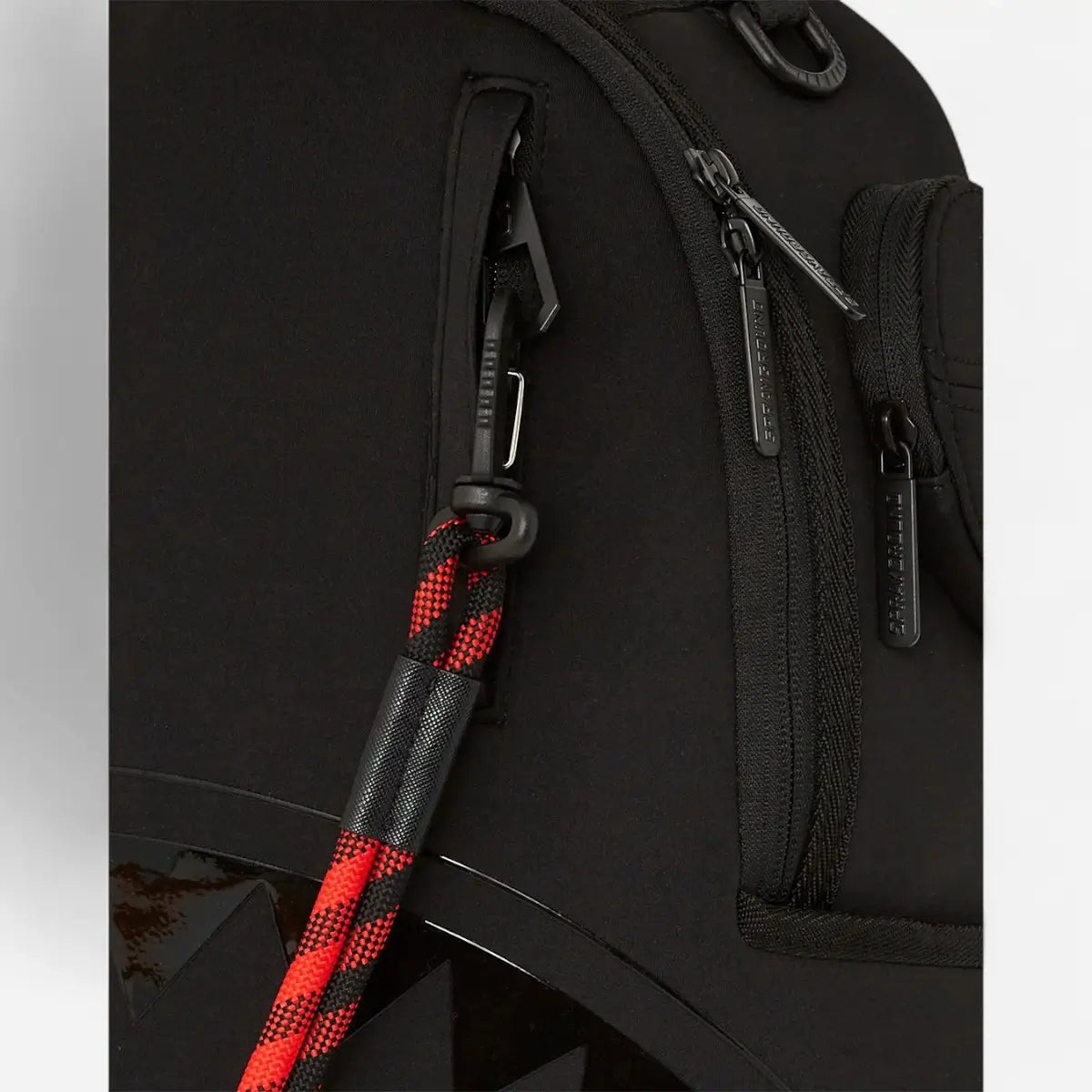 Il Shark Central Kyushu Mountain DLXS porta l’iconico stile Sprayground a un nuovo livello, con un design total black arricchito dall’inconfondibile grafica Shark Mouth tono su tono e un dettaglio unico: la corda da arrampicata rossa e nera che attraversa il fronte, ispirata al mondo outdoor.