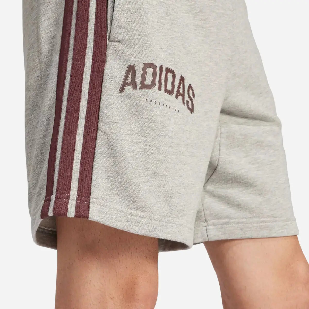 ADIDAS SHORT CODES COLLEGIATE LINEAR GRAPHIC GREY / BORDEAUX – FRESH VIBES UNIVERSITARIE.