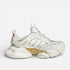 Ispirate alle silhouette running tecniche degli anni 2000, queste sneaker reinterpretano il mondo performance in chiave streetwear contemporanea. La tomaia multistrato in tessuto tecnico e materiali sintetici crea un look dinamico e strutturato, mentre la colorazione Off White con dettagli Metallic Gold e accenti rossi aggiunge un tocco premium ed elegante, perfetto per outfit urban moderni.