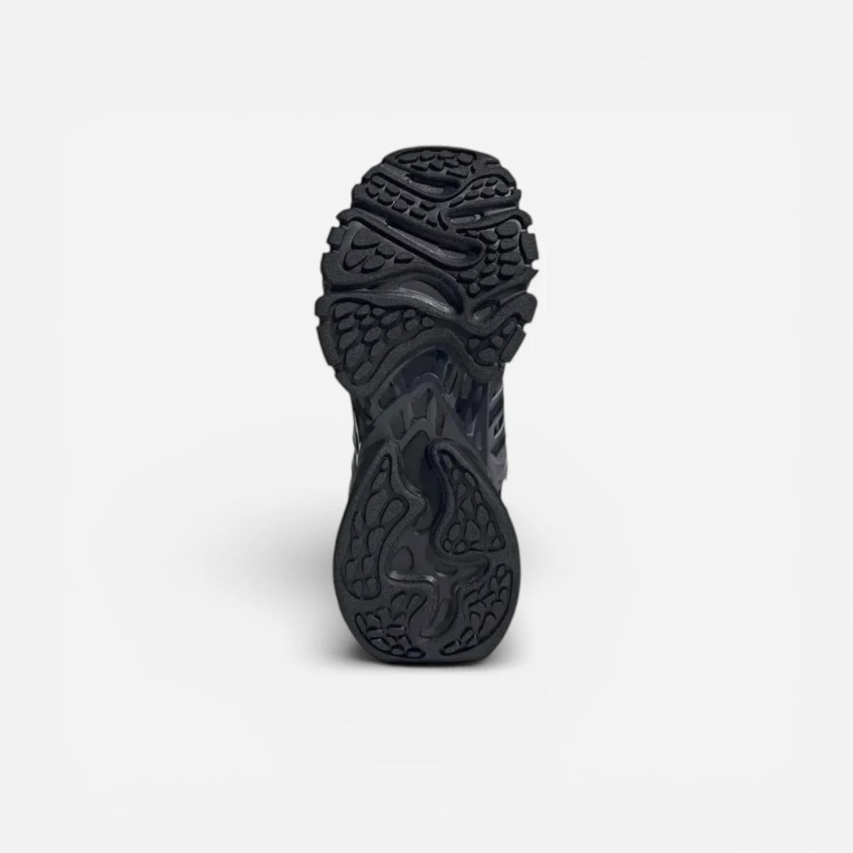 Ispirate alle silhouette running performance, queste scarpe reinterpretano il mondo sportivo in chiave streetwear con una struttura chunky e dettagli dinamici. La colorazione Total Black dona un’estetica minimal e versatile, ideale per outfit urbani moderni e facili da abbinare.